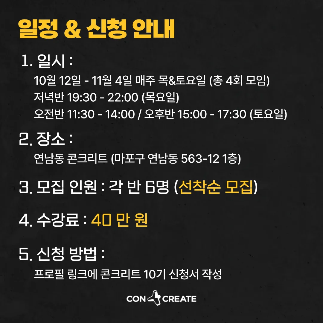 콘크리트 10기 커리큘럼 및 일정