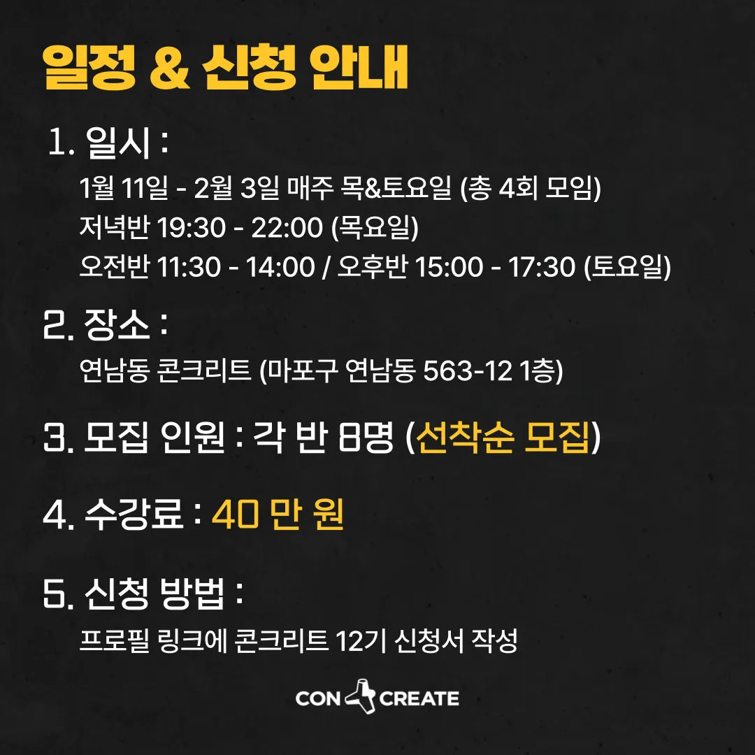 콘크리트 12기 커리큘럼 및 일정