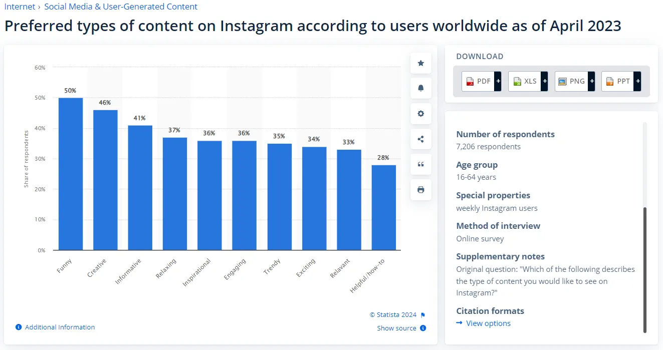 사람들이 인스타그램에서 재미를 느끼는 콘텐츠를 봤습니다.