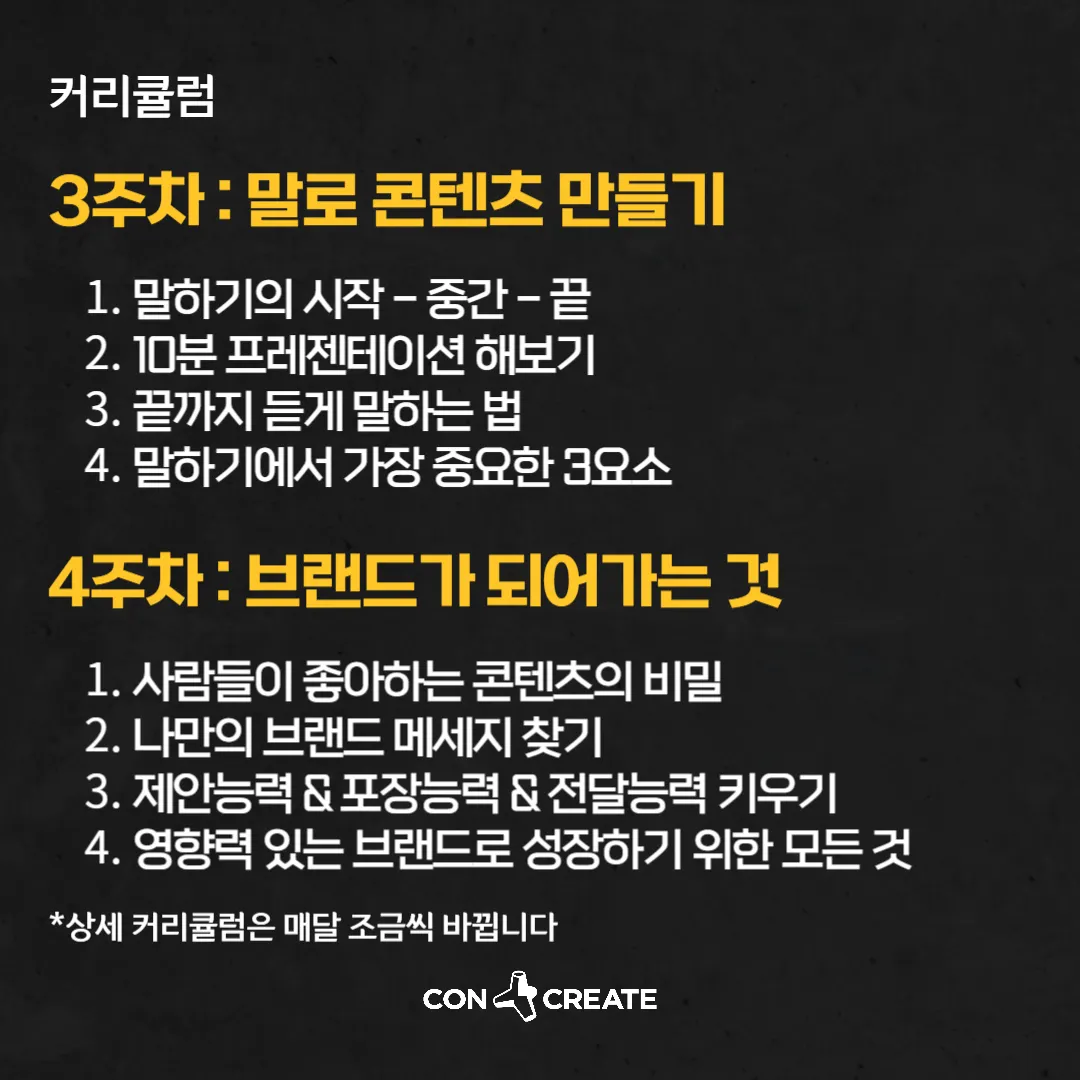 총 4주간 함께 콘텐츠를 만들고, 브랜드 방향을 함께 고민합니다.