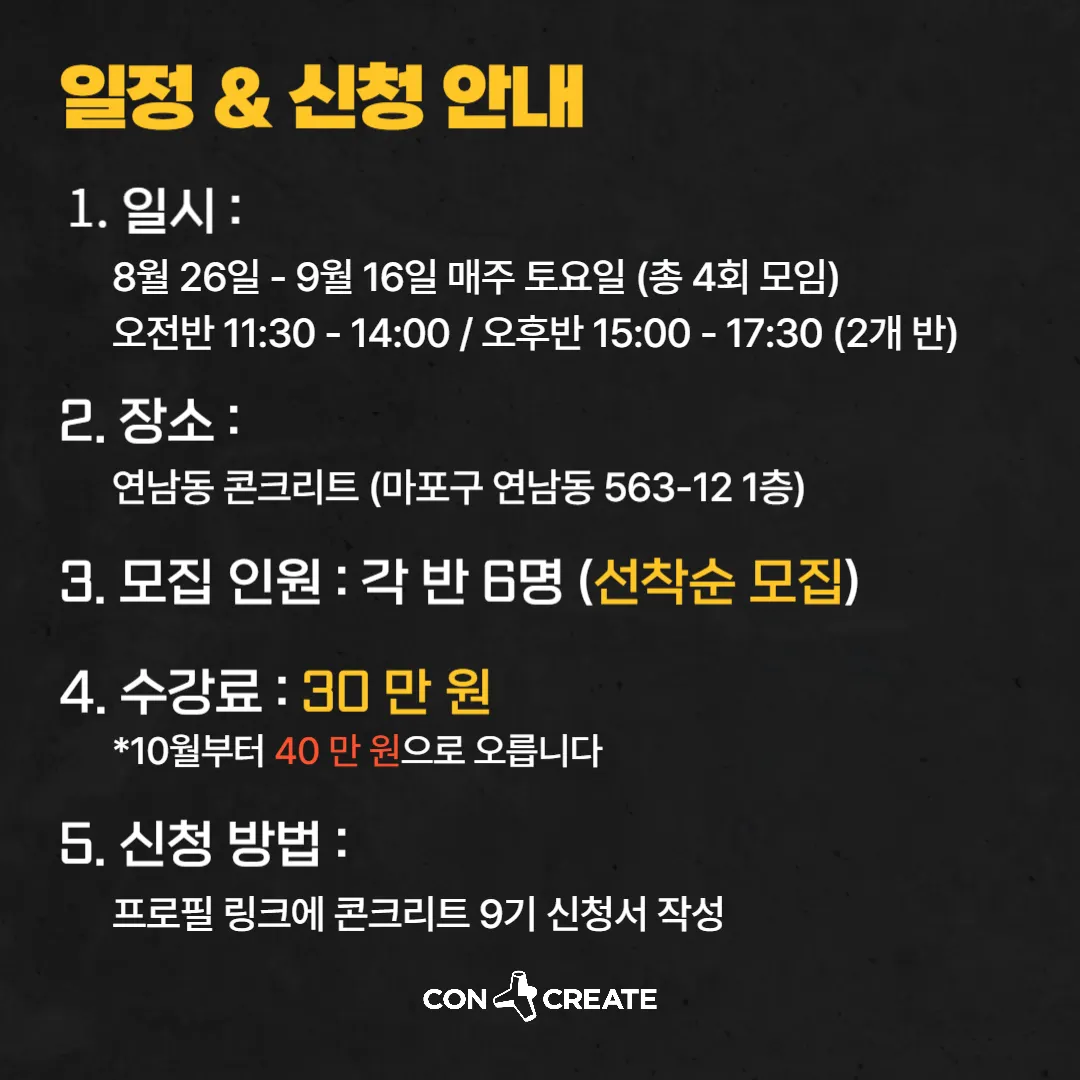 8월 26일 - 9월 16일 매주 토요일 (총 4회 모임)